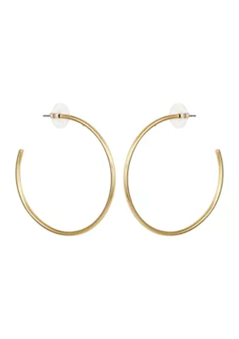 An ultra-thin hoop silhouette lends charm to these silver-tone earrings from Vince Camuto. Post back earring Imported Product Specifications 75 mm L Material & Care Silver-tone metal Clean with a soft cloth