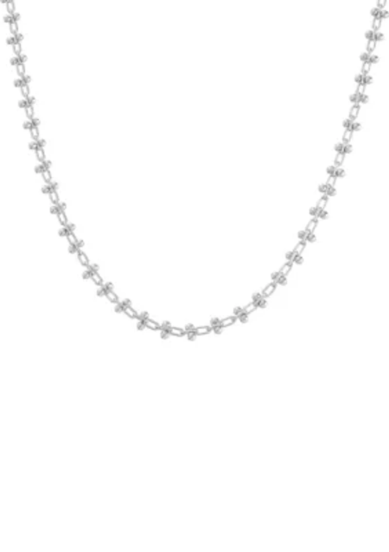 Gorgeous silvery hues reflect elegantly across the 18'' silhouette of this stunning necklace from Belk Silverworks. Lobster closure Polished finish Imported Belk Exclusive Product Specifications 18" L + 2" extender Material & Care Silver-plated metal Clean with a soft cloth