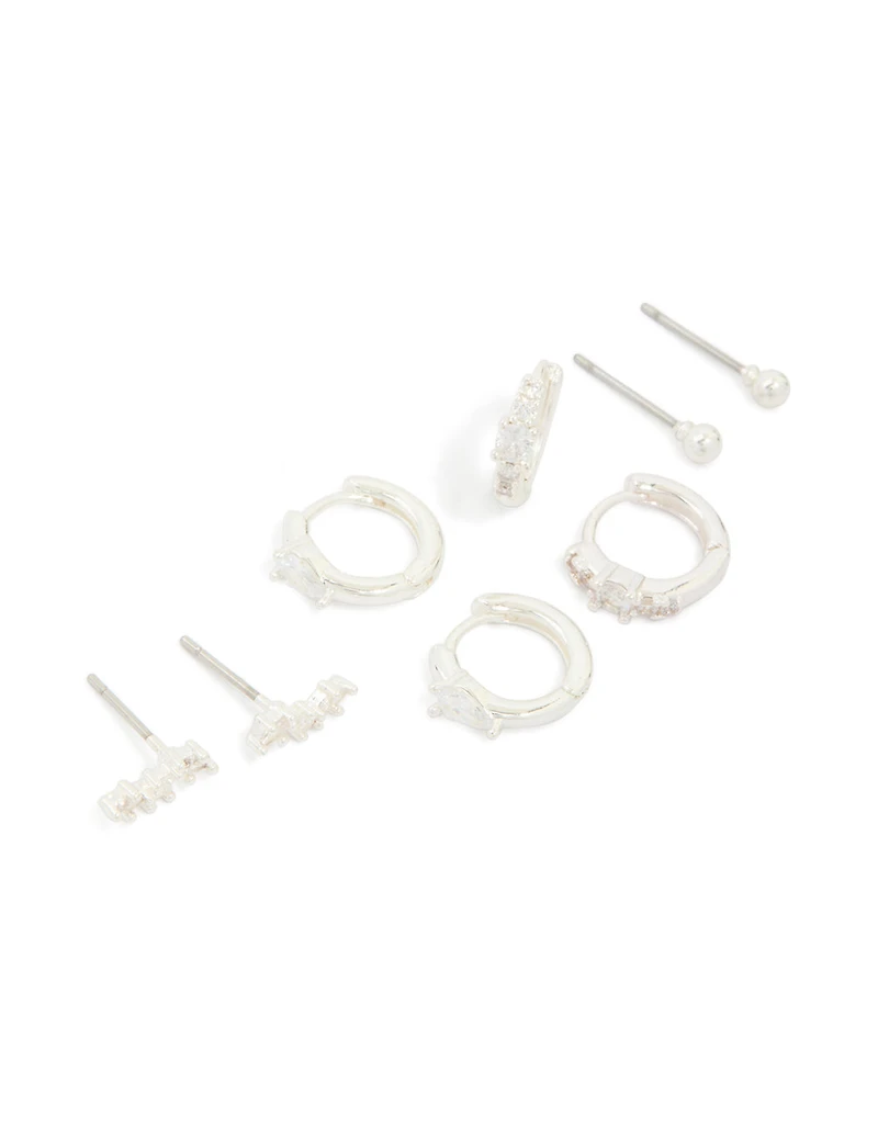 Silver Plated Cubic Zirconia Fine Huggie & Stud Earrings 4-Pack