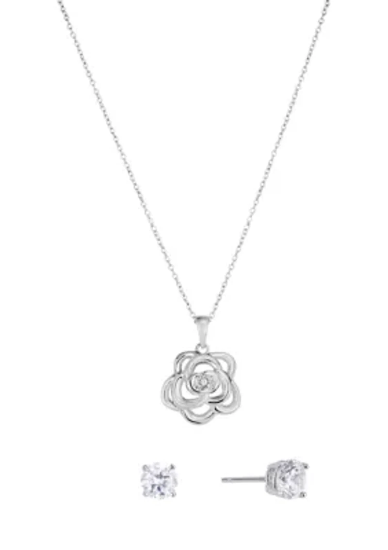 Silver Plated Cubic Zirconia Flower Necklace and Stud Earring Set in Chattanooga, TN