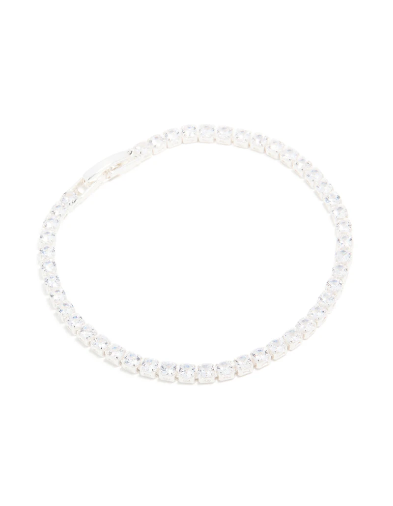 Add a touch of effortless elegance to your look with this Silver Plated Cubic Zirconia Timeless Tennis Bracelet. This stunning tennis bracelet features a sleek silver-plated design, perfectly complemented by shimmering cubic zirconia crystals that catch the light beautifully. Whether you're heading to a formal event, a wedding, or simply want to elevate your everyday outfit, this bracelet is the perfect accessory. Its classic tennis bracelet style makes it versatile enough to pair with anything from a chic evening dress to a casual blouse and jeans. Wear it solo for understated glamour or layer it with other bracelets for a trendy, stacked look. Material: Cubic Zirconia, Silver Plated Colour: Silver, Clear Dimensions: Length: 16.5 cm