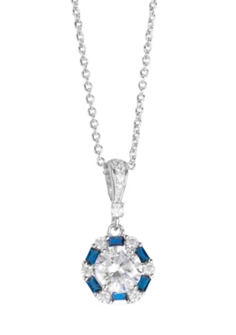 Silver Plated Dark Blue Cubic Zirconia Halo Necklace in Chattanooga, TN