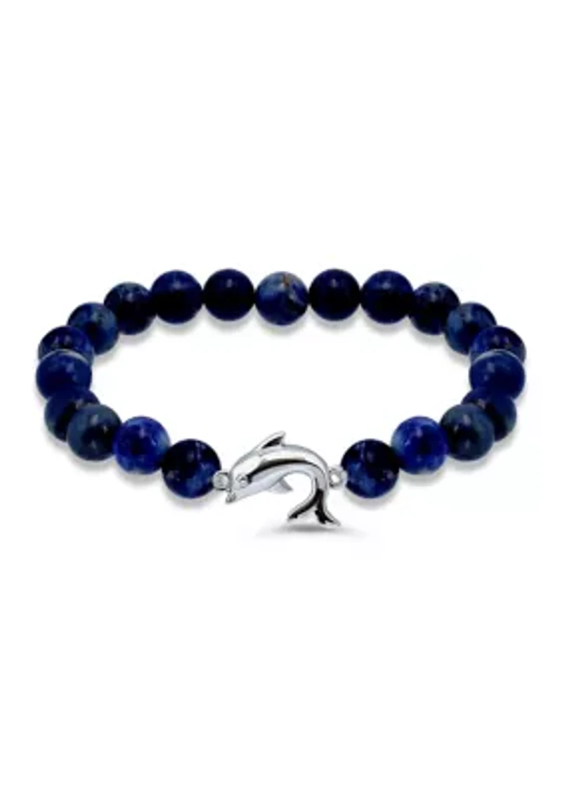 Silver Plated Dolphin Charm Beaded Stretch Bracelets
