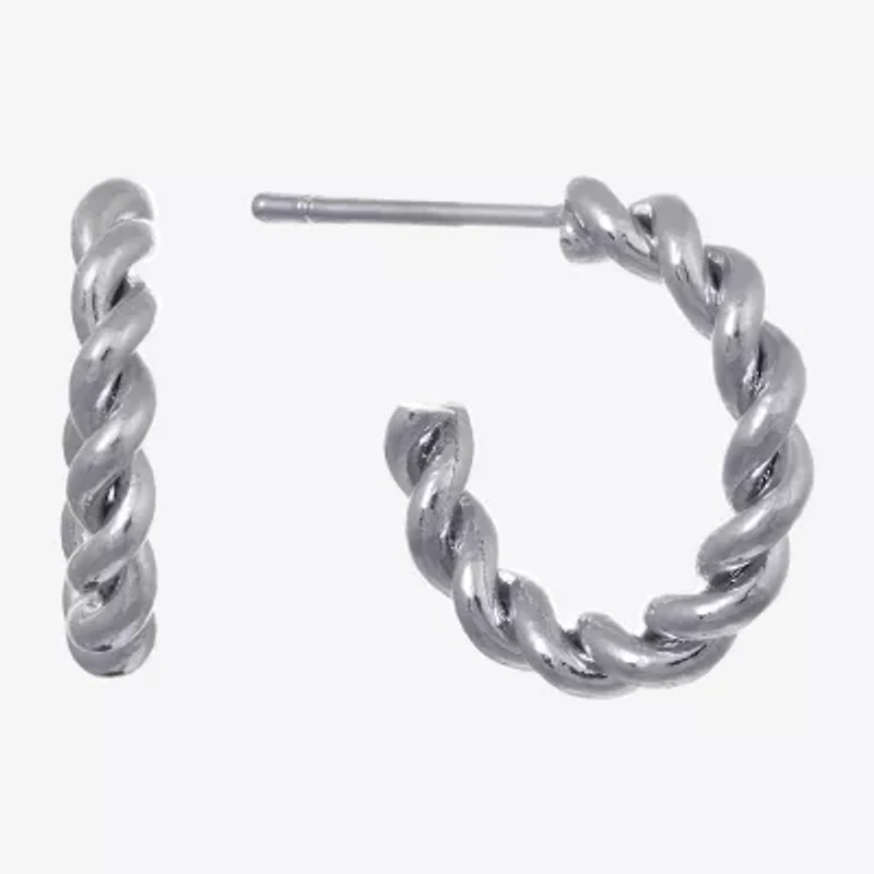 Silver Reflections Twisted Huggie Womens 16mm Hoop Earrings
