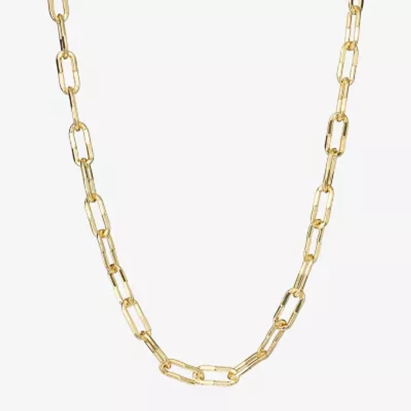 Silver Reflections Womens 14K Gold Over Brass 18 Inch Paperclip Chain Necklace