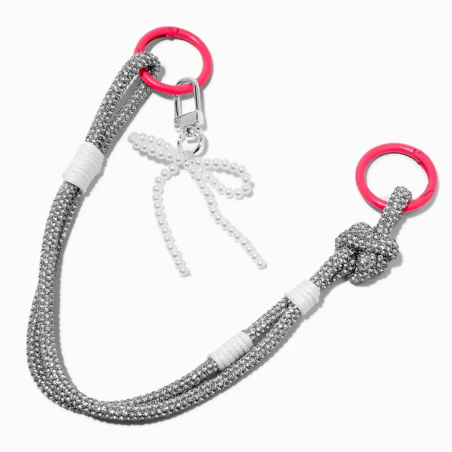 Glam Shine Rhinestone Bow And Heart Bag Charm