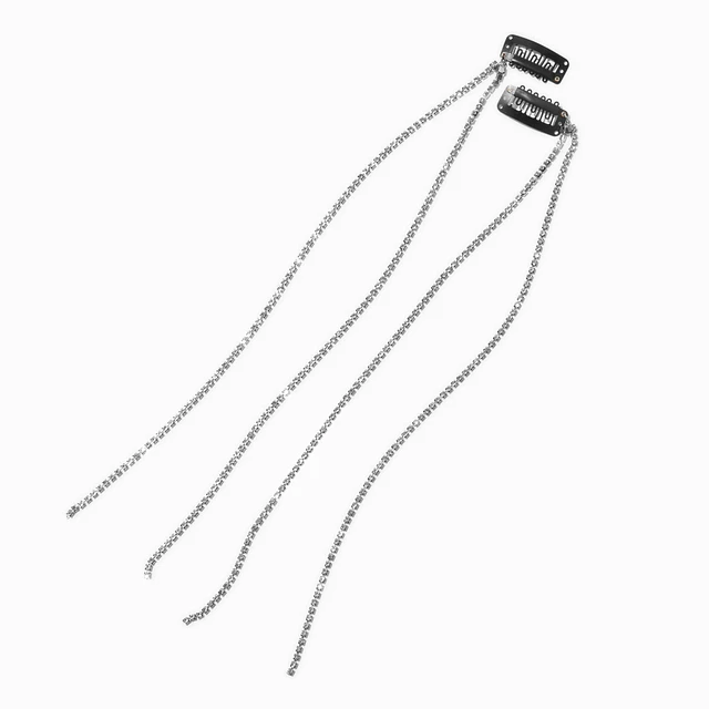 Silver Rhinestone Faux Hair Clip In Extensions - 2 Pack
