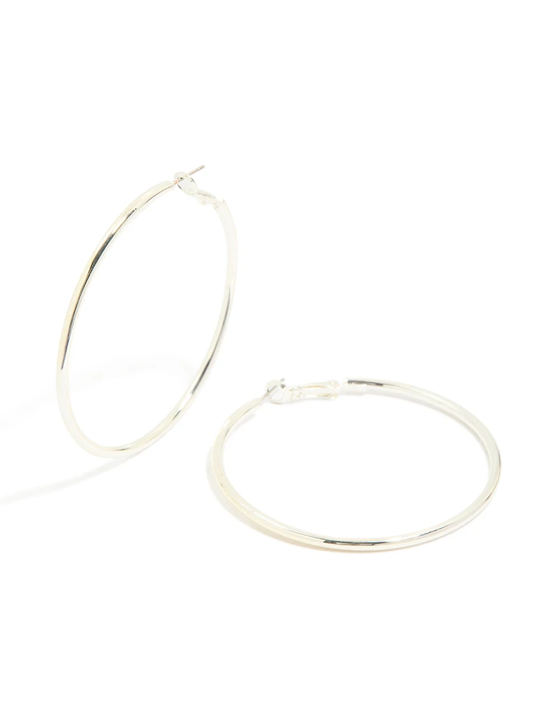 Elevate your everyday style with these Silver Thin Round Hoop Earrings. These classic round hoops are crafted from silver, offering a sleek and timeless design that’s perfect for any occasion. Lightweight and versatile, they’re ideal for everything from casual brunches to evening outings. Pair them with a flowy dress for a chic vibe or keep it simple with jeans and a tee for effortless cool. Whether you’re after silver earrings, thin hoops, or a go-to piece for daily wear, these earrings tick all the boxes. Perfect for adding a touch of understated elegance to any outfit! Colour: Silver Dimensions: Length 60 mm x Width 2 mm