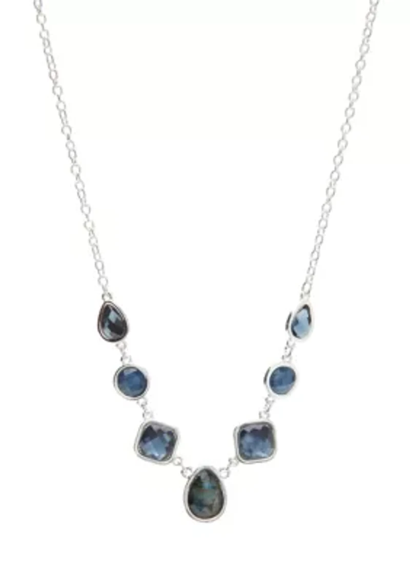 Magnetic blue hues add an enchanting finish to this lovely frontal necklace from Belk, making it perfect to pair with any ensemble. Lobster closure Polished finish Imported Belk Exclusive Product Specifications 16'' L + 3'' extender Material & Care Silver-tone metal Clean with a soft cloth