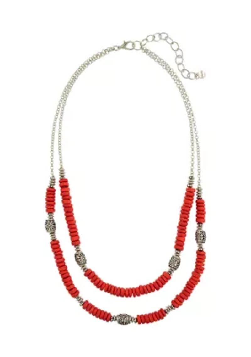 Beautiful beads adorn this charming double-row necklace from Ruby Rd, making it perfect to pair with your favorite outfits. Lobster closure Antique finish Imported Product Specifications 21'' L x 21'' W x 0.62'' H Material & Care Silver-tone metal Clean with a damp cloth or soft brush