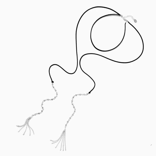 Silver-tone Beaded Dangle Black Cord Wrap Choker Necklace