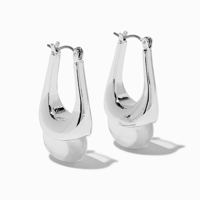 Silver-tone Clear Acrylic Oblong Hoop Earrings