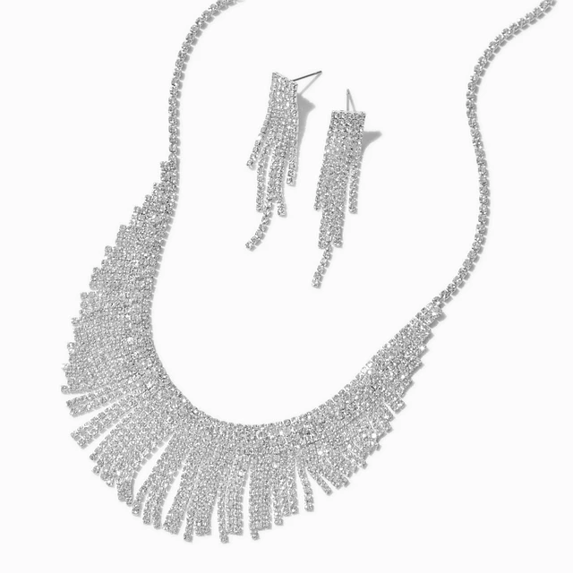 Silver-tone Crystal Mini Fringe Jewelry Set - 2 Pack