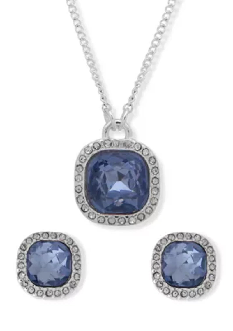 Gleaming cushioned stones make this boxed necklace and earring set from Nine West a stunning addition to your jewelry collection. 3-piece set Necklace: lobster closure Earrings: post back earring Polished finish Imported Product Specifications 16" L + 3" extender Material & Care Silver-tone metal Clean with a soft cloth