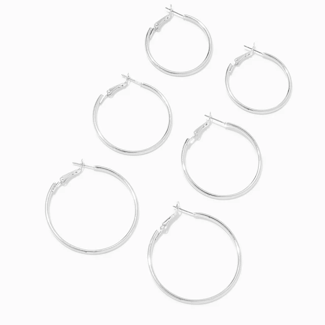 Silver Graduating Simple Hoop Earrings 3-Pack