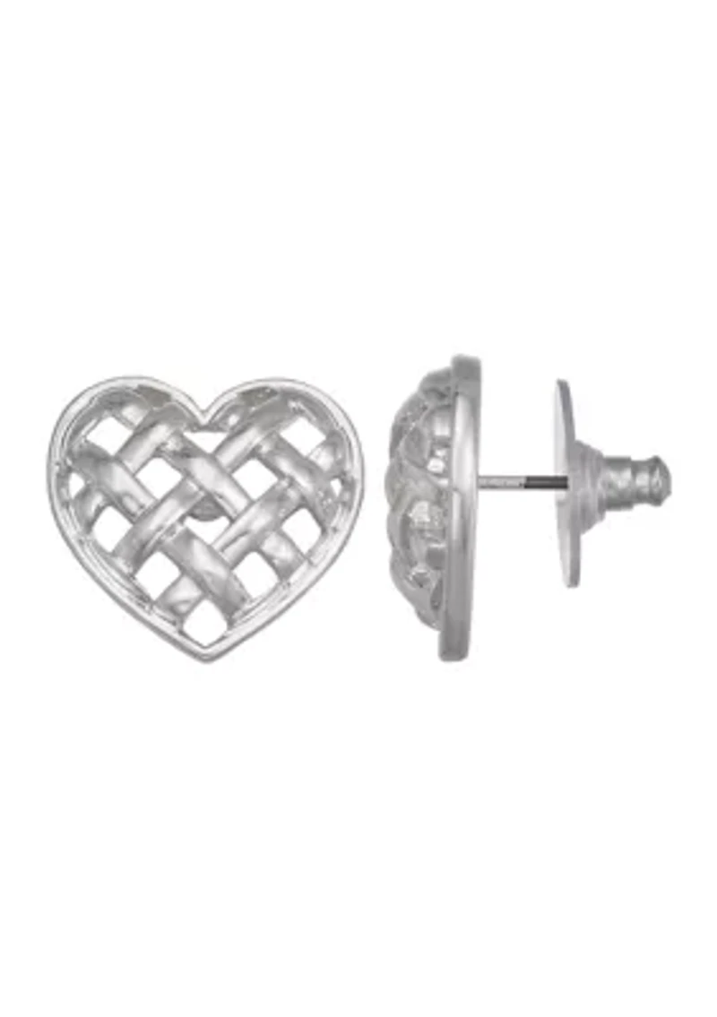 Silver Tone Heart Weave Stud Earrings