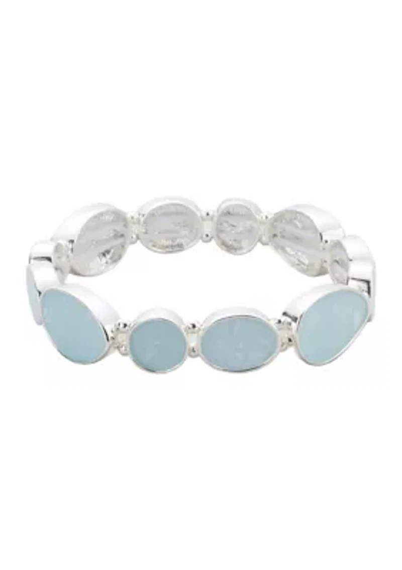 Varying in blue, green, and pink, this stretch inlay bracelet from Kim Rogers® features oval stones backed by silver-tone metal. Slip-on Polished finish Imported Belk Exclusive Product Specifications 2.25" dia Material & Care Silver-tone metal Clean with a soft cloth