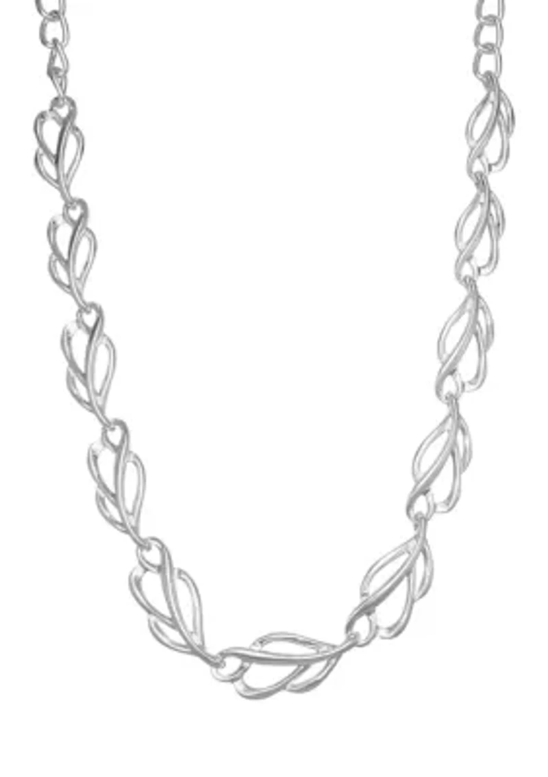 This exquisite collar necklace, crafted from polished silver-tone metal, adds a touch of elegance to any ensemble. Its unique design features a delicate array of leaves, meticulously detailed to capture the essence of nature. The lobster closure ensures a secure and comfortable fit, making it an ideal accessory for both casual and formal occasions. With its timeless beauty and versatility, this necklace is a must-have addition to your jewelry collection. Lobster closure Polished finish Imported Product Specifications 16" + 3" extender Material & Care Silver-tone metal Clean with a soft cloth