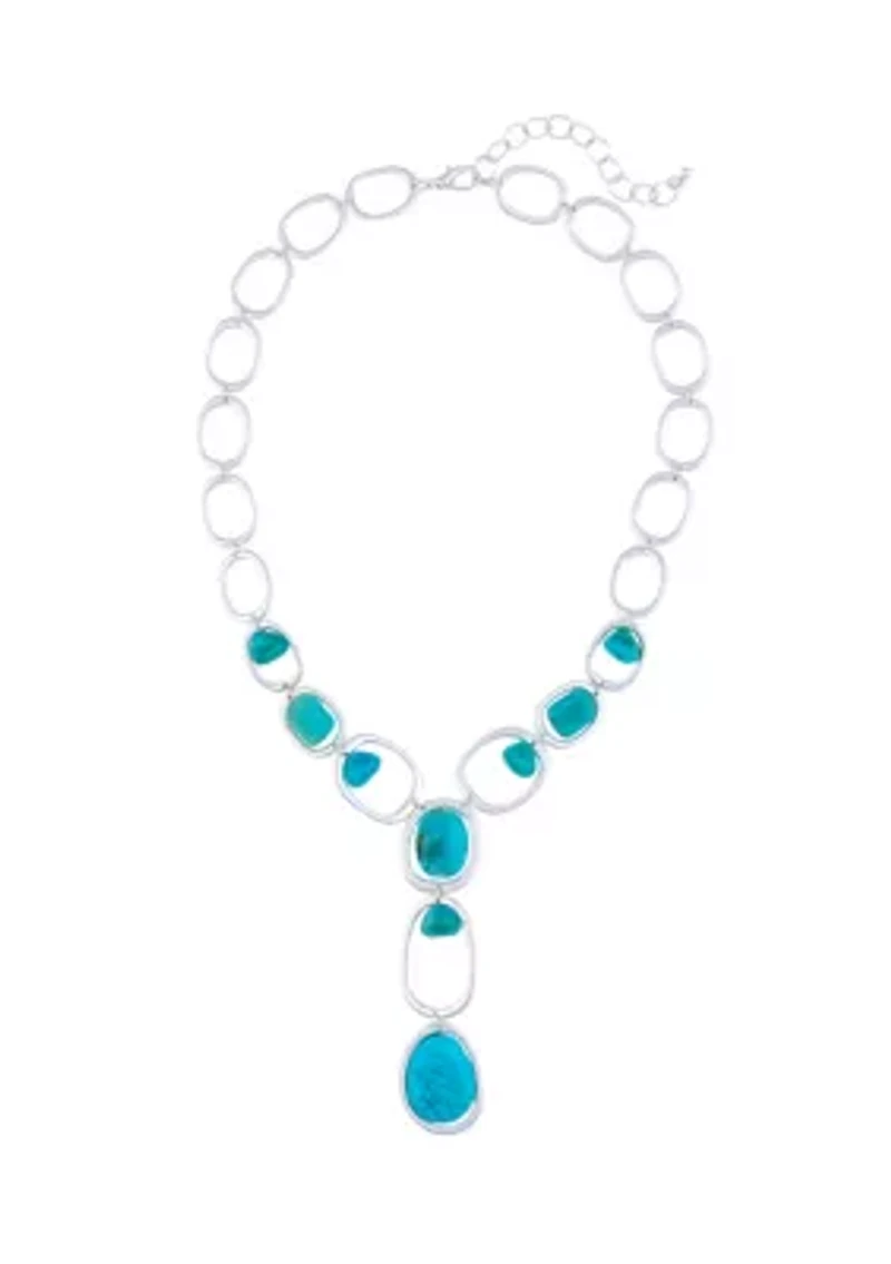 Silver Tone Open Links with Turquoise Nuggets Y Necklace
