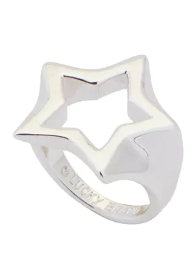 Chunky rings are so in. This Open Star Ring from Lucky Brand matches the warm-weather season vibes. Made from silver-tone brass, this piece features a bold star on a size 7 ring. Style this ring with a casual, everyday outfit, or pair it with other pieces for a fierce night-out look. Slip-on Polished finish Imported Material & Care Silver-tone metal Clean with a soft cloth
