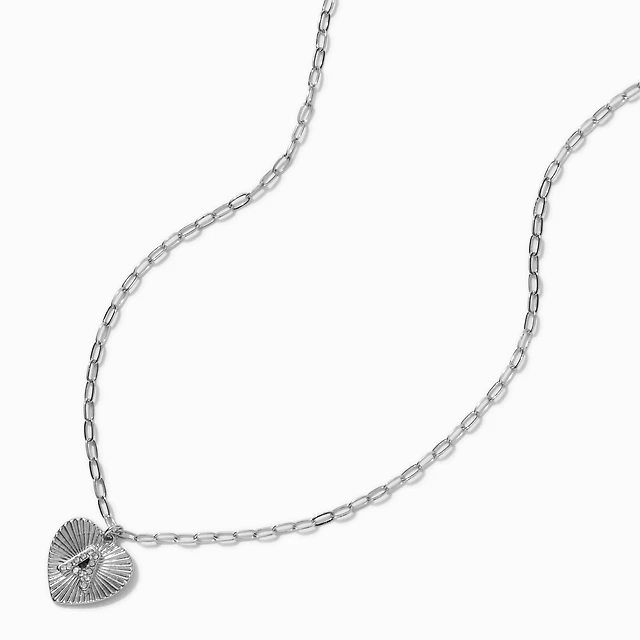 Silver Tone Etched Heart Pendant Necklace