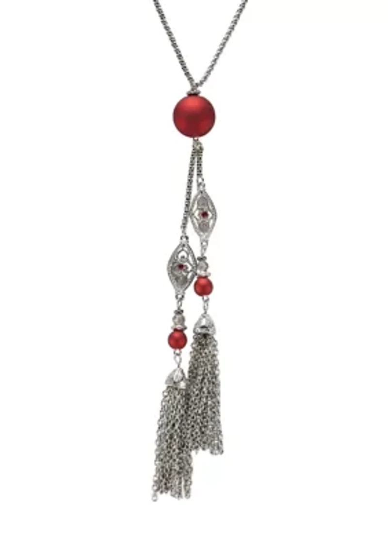 Red beads accent this two-row long necklace from Ruby Rd finished with playful tassels. Lobster closure Polished finish Imported Product Specifications 28" L Material & Care Silver-tone metal Clean with a damp cloth or soft brush