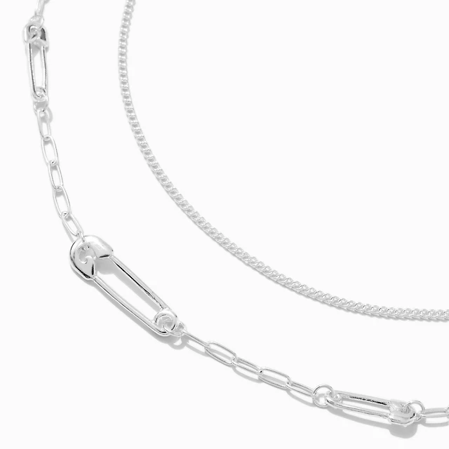 Silver-tone Safety Pin Chain Multi-Strand Necklace