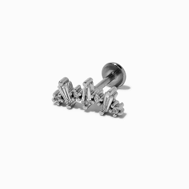 Silver-tone Stainless Steel Cubic Zirconia Baguette Crawler 18G Conch Earring