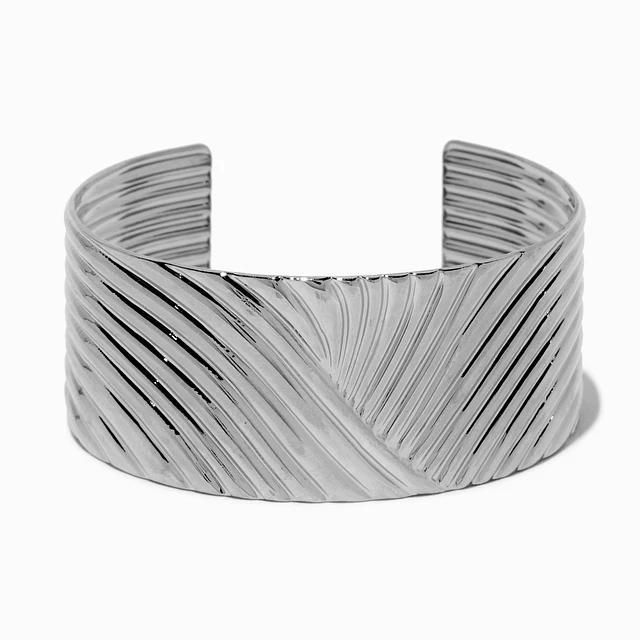 Silver-tone Thick Ribbed Cuff Bracelet