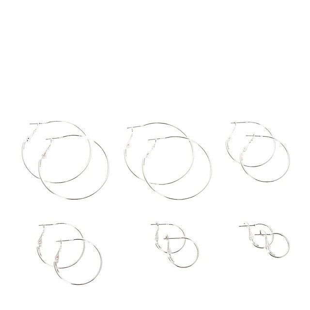 Silver-tone Thin Graduated Hoop Earrings - 6 Pack