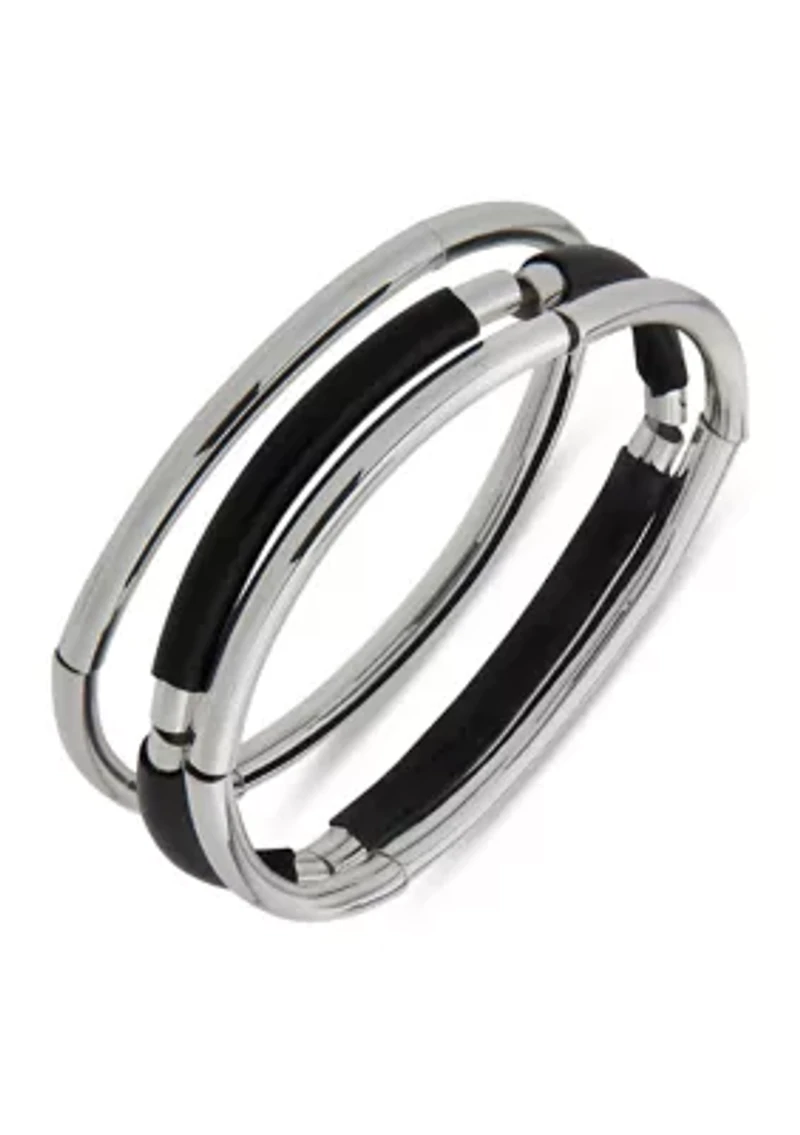 Silver Tone Trio Black Stretch Bracelet