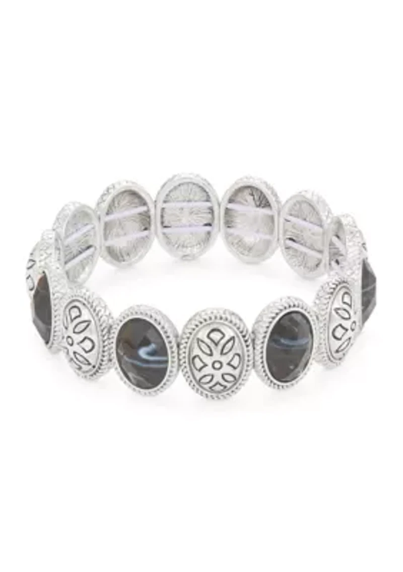 Silver Tone Western Stretch Bracelet