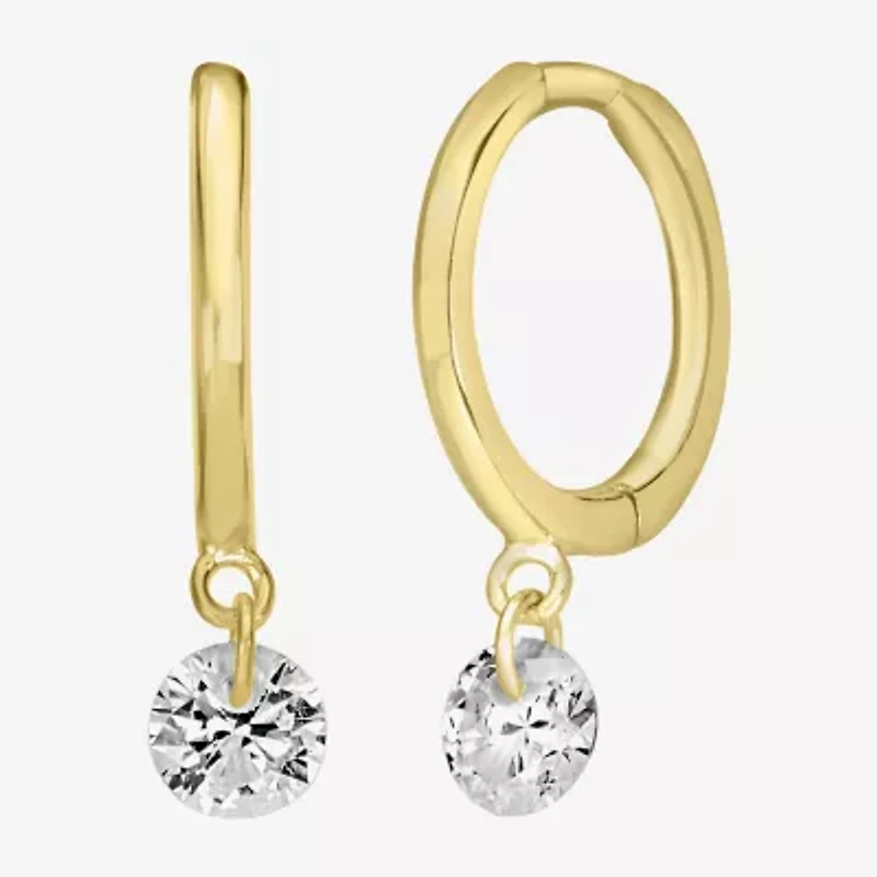Silver Treasures Delicates Crystal Drop Womens Cubic Zirconia 14K Gold Over Brass 11mm Hoop Earrings