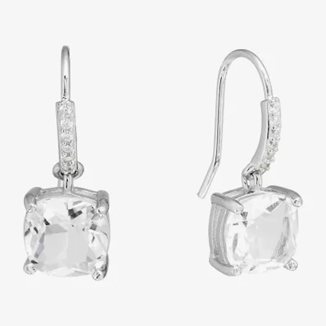 Silver Treasures Womens Crystal Sterling Silver Drop Earrings