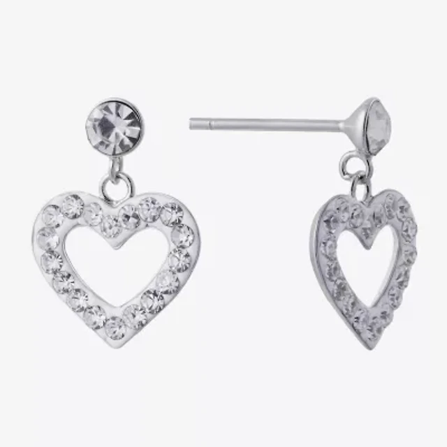 Silver Treasures Womens Crystal Sterling Silver Heart Drop Earrings