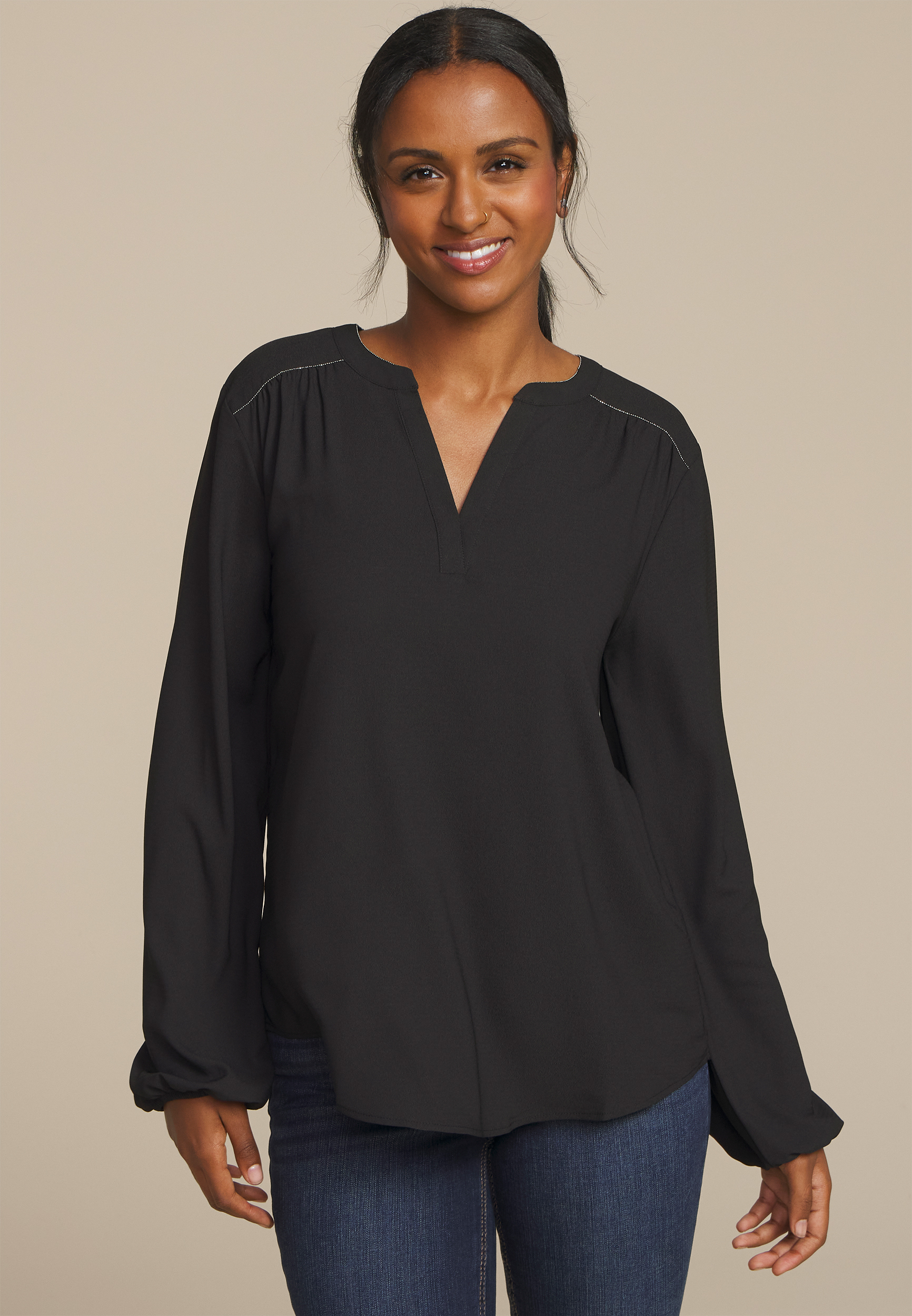 Silver Trim V Neck Blouse in Chattanooga, TN