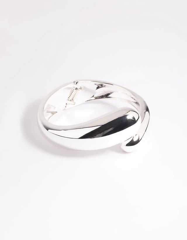 Silver Tone Blue Stone Hinged Cuff Bracelet