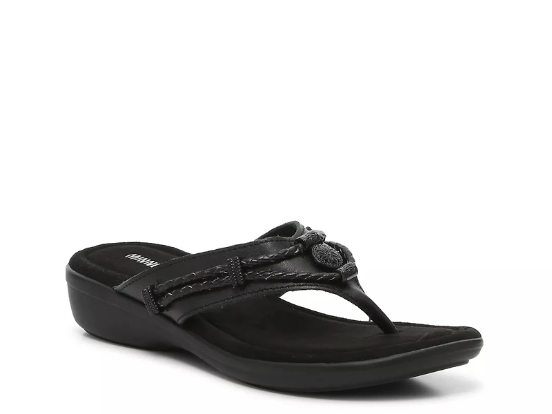 Complete warm weather looks in a charming way with the Silverbay sandals from Minnetonka. The casual flip flop silhouette is adorned with a metallic charm and a braided accent for a look that stylish yet relaxed.