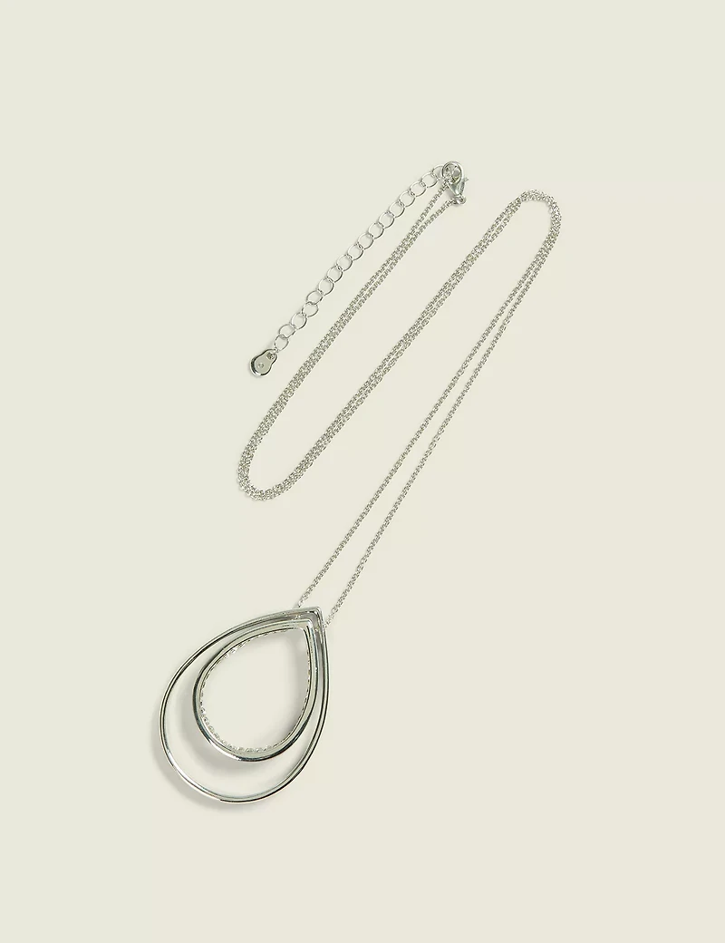Available in Plus Size Pave sparkle teardrop necklace in sleek silvertone metal. A subtle yet dazzling piece that catches the light (and attention!) everywhere you go. FIT: Our necklaces are thoughtfully designed with extenders to fit any length, every body. Designed to be 3" longer than industry standard with an extender that lets you add up to 3 inches. Length: 28+3 MATERIALS: NICKEL-FREE: Our jewelry is nickel-free for sensitive skin Spot Clean 70% Iron/30% Zinc Item Number #414935 Imported Plus Size Jewelry ". Plus Size Silvertone Pave Teardrop Pendant Necklace, Women's, Lane Bryant