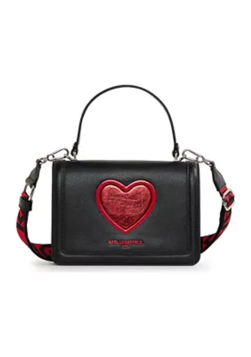 Known for unparalleled style and luxurious craftsmanship, this KARL LAGERFELD PARIS crossbody bag was made for wearing. Magnetic snap closure Top handle with 4'' drop Crossbody strap with 14" - 23" drop Exterior: 1 back slip pocket Interior: 1 zipper pocket, 1 slip pocket Imported Product Specifications 11" L x 6.5" W x 2.5" H Material & Care Leather Spot clean only