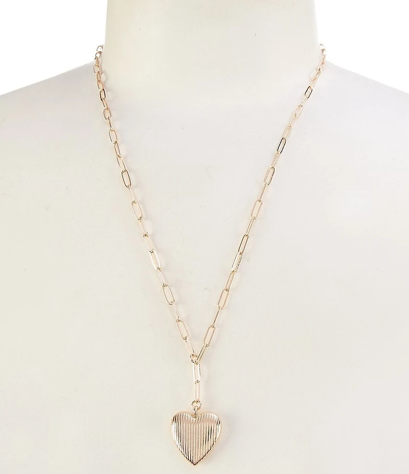 Simplicity Line Textured Heart Pendant Paperclip Chain Long Pendant Necklace in Chattanooga, TN