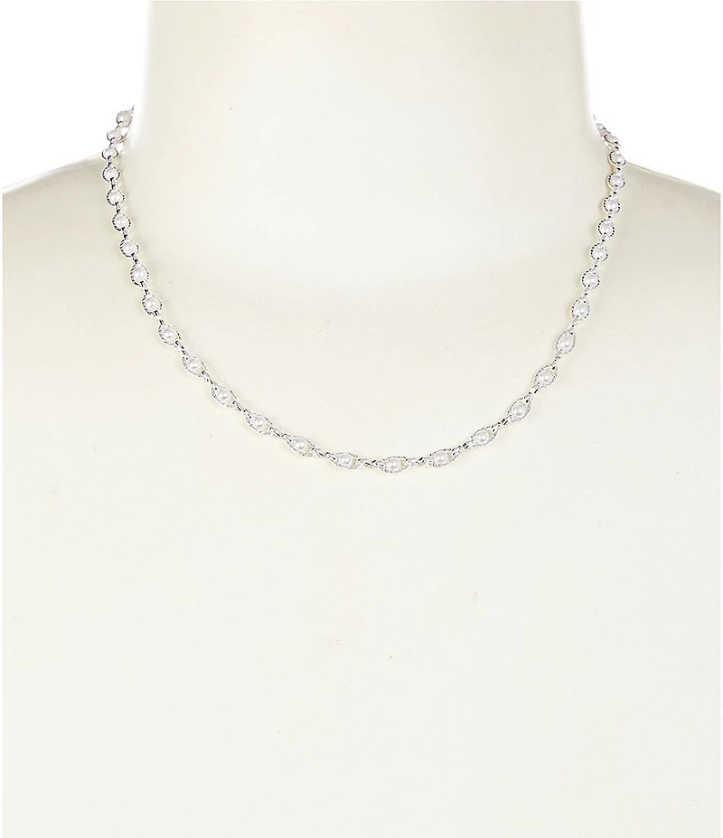 From Simplicity, this necklace features: Collar necklace Silver tone hardware Faux pearls Lobster claw closure Approx. 14" L Imported.