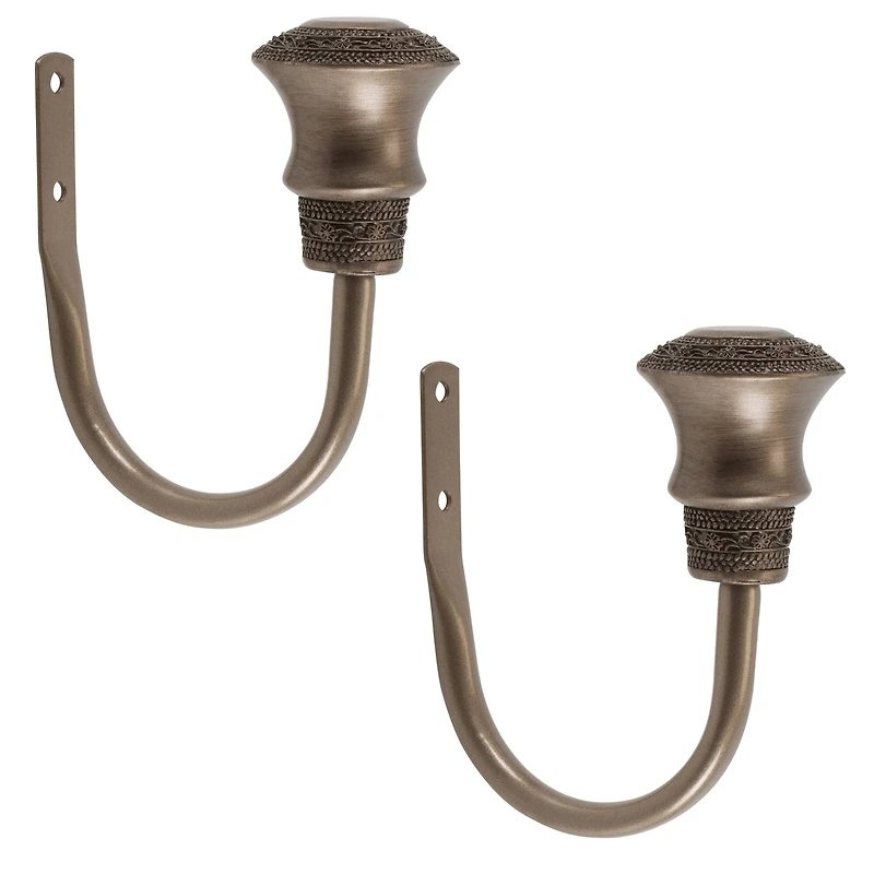Complete your window style with the Simplify Curtain Holdbacks. Made of heavy gauge steel to proficiently hold any size curtain. Adds style and function to your home!Details:Black silver6.25" x 7.25"Steel