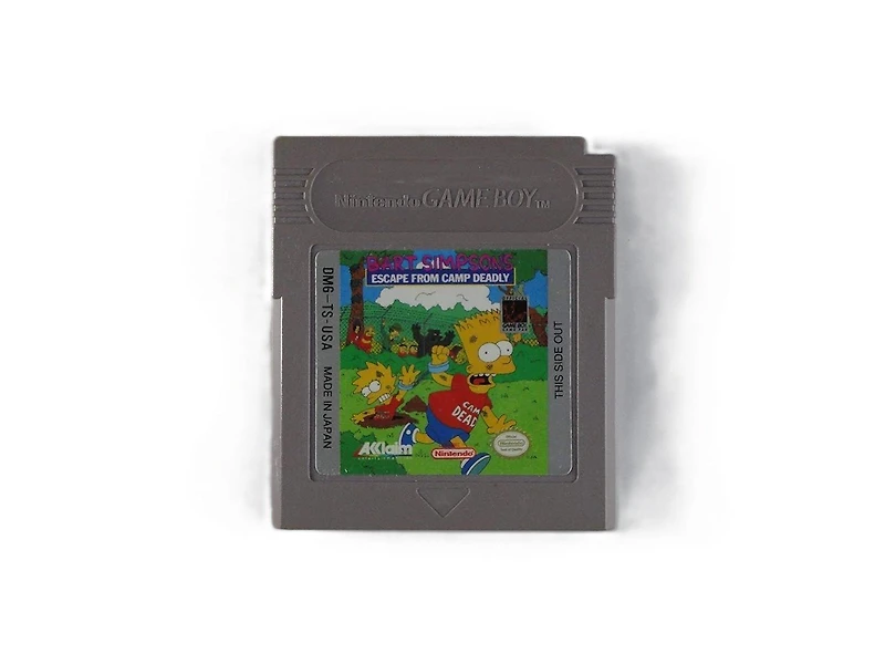 Bart Simpson’s Escape from Camp Deadly is a 1991 side‑scrolling action‑platformer for the Game Boy, developed by Imagineering and published by Acclaim Entertainment. You play as Bart Simpson, who—along with Lisa—has been sent to the notoriously awful Camp Deadly, run by the tyrannical Ironfist Burns, a relative of Mr. Burns. Armed with spit‑wads, boomerangs, and other improvised weapons, Bart must survive brutal counselors, bullies, and dangerous camp challenges as he fights to escape the worst summer camp ever.