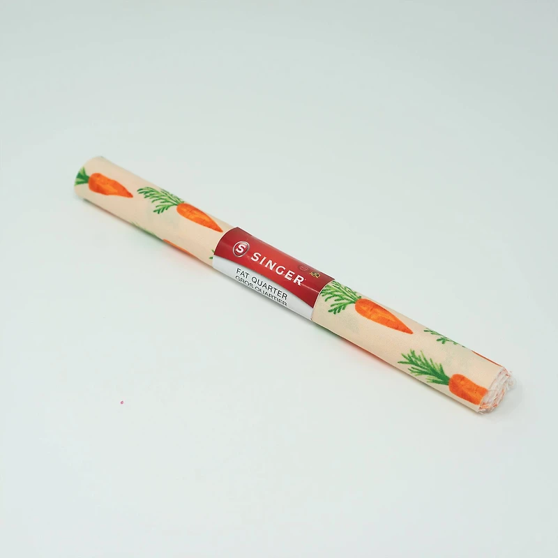 Add a splash of color to your project with our new SINGER® FABRICS 100% ringspun print cotton fabric. Our SINGER® fabrics is perfect for quilting, apparel and more. Ideal for all of your sewing and crafting projects.Carrot PrintFabric measures 18" x 21"100% ringspun cottonFat quarterGreat for quilting ImportedNot intended for children's sleepwear