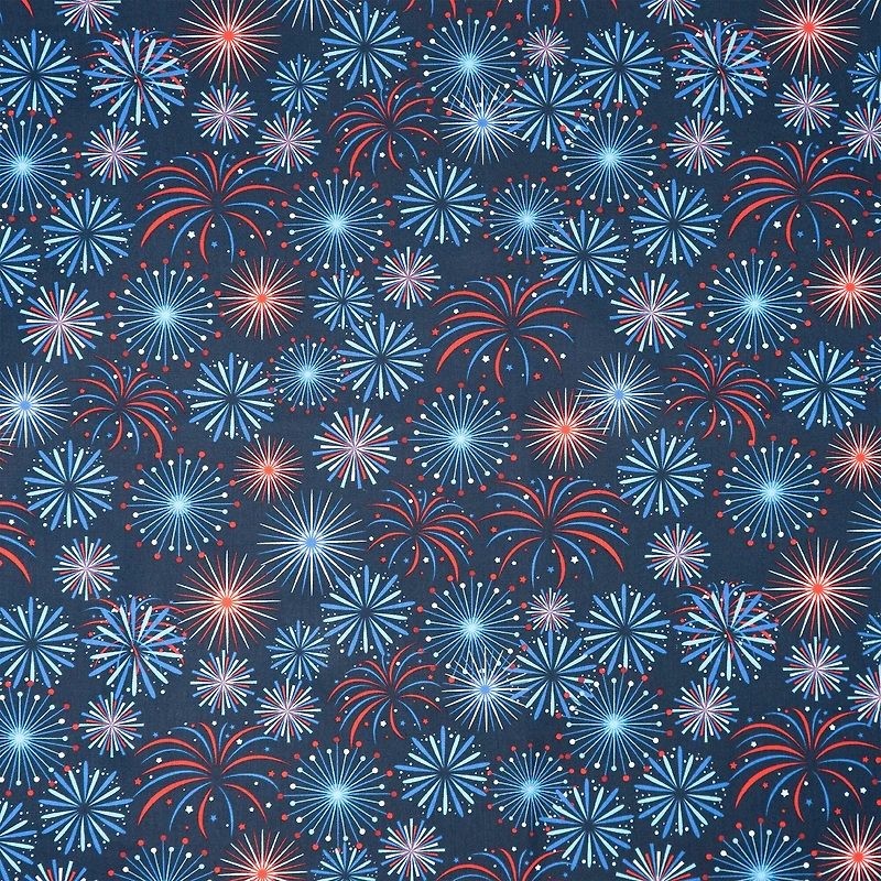 PAdd a splash of color to your project with our new SINGER® fabrics 100% ringspun print cotton fabric. It’s perfect for quilting, apparel, and more. Ideal for all your sewing and crafting projects. Made from 100% ringspun cotton with a width of 44", this imported product offers a maximum cut length of 8 yd. Note: While we will do our best to fulfill your order in one continuous cut, you may receive it in multiple cuts. Not intended for children's sleepwear. Pattern: Patriotic fireworksContents: 100% ringspun cottonWidth: 44"Maximum cut length: 8 ydImportedIdeal for sewing and crafting projectsNOTE: While we will do our best to fulfill your order in one continuous cut, you may receive your order in multiple cuts. Not intended for children's sleepwear.