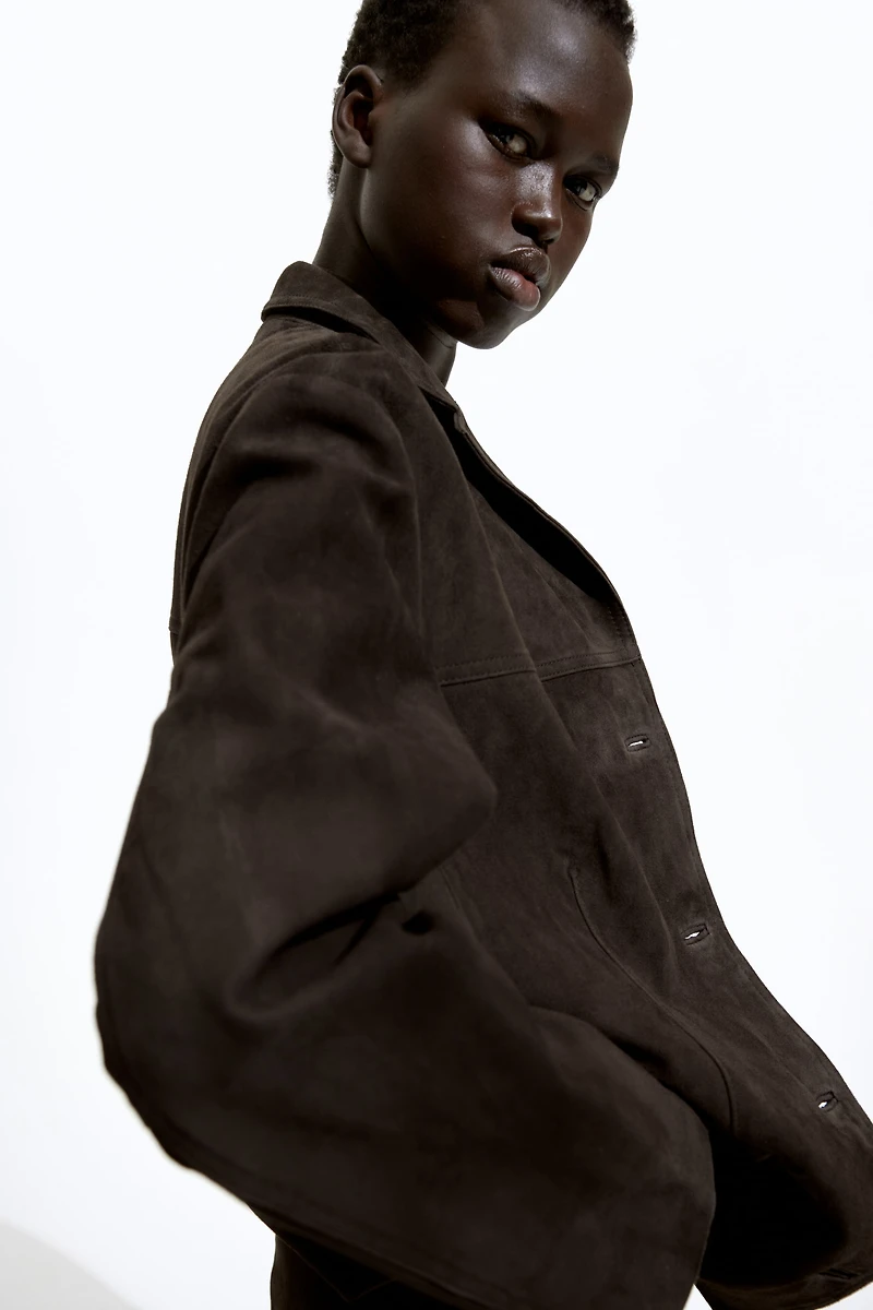 Loose-fit, single-breasted jacket in soft suede with a yoke at front and back. Notched lapels, buttons at front, and welt front pockets with flap. Lining in viscose twill.