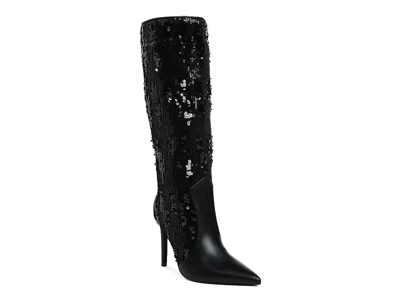 Dance through the night donning the Sitarah boot from London Rag. Glittery shaft and smooth upper give this pointed-toe boot a stunning look. The lightly padded memory foam insole and breathable lining keep your feet comfortable all day. Its ergonomic structure and sturdy stiletto heel provide perfect support, and the durable rubber sole ensures confident, slip-resistant steps.