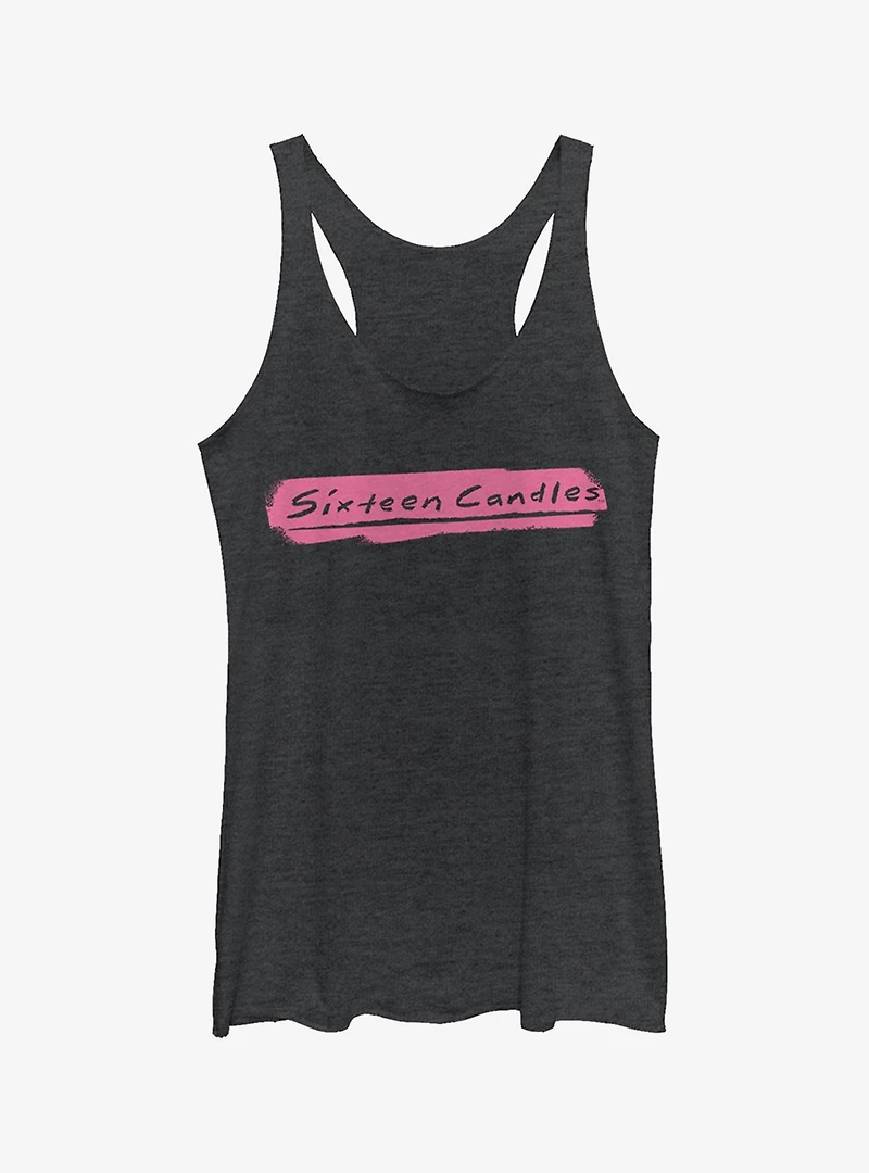 Everyone might have forgotten Sam's 16th birthday, but no one will forget the Sixteen Candles Paint Stripe Logo Women's Racerback Tank Top! The classic 80's coming-of-age film logo is printed across this relaxed-fit Sixteen Candles tank top in pink.
