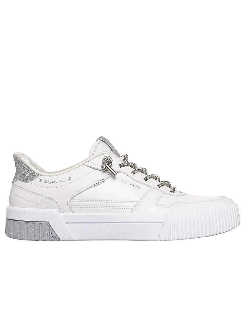 Available in Plus Size Just Step In™ to the clean, classic court look with Skechers Hands Free Slip-ins®: Jade - Radiant Reflections. Designed with our Heel Pillow®, this court-style slip-on sneaker features a duraleather upper with a glitter trim, rhinestone-embellished deco laces, and a cushioned Skechers Air-Cooled Memory Foam® insole.Key Features Skechers Hands Free Slip-ins® for an easy fit Heel Pillow® holds your foot securely in place Skechers Air-Cooled Memory Foam® cushioned comfort insole.Design Details Synthetic duraleather upper with a glitter trim Court style slip-on with rhinestone-embellished deco laces Flexible traction outsole 1 1/4-inch heel height Skechers® logo detail. Item Number #415416 ". Plus Size Skechers Hands Free Slip-ins: Jade - Radiant Reflections, in White, 9.5M, Women's, Lane Bryant
